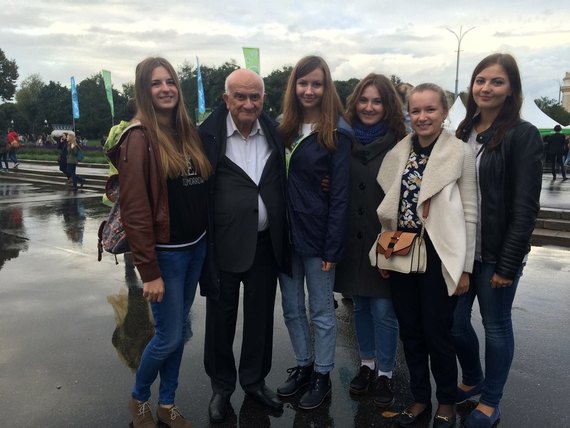 Sergey Karaganov, Dean of the Faculty of World Economy and International Affairs, and beautiful HSE girls. Photo by nvictoriaaa