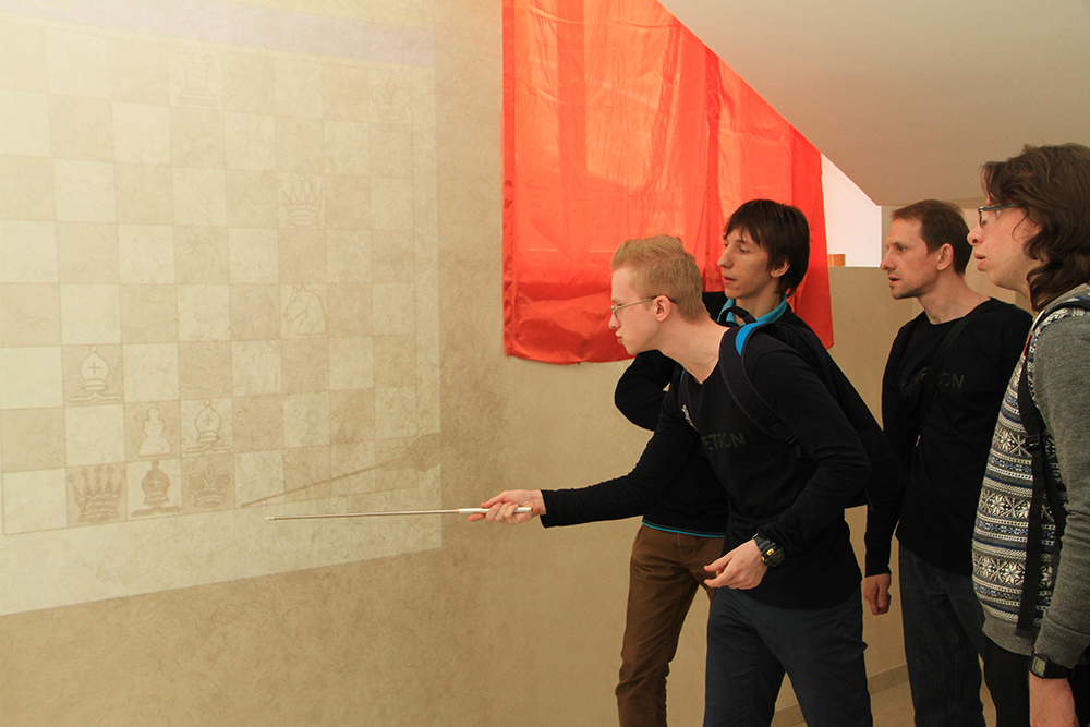Cтуденты демонстрируют разработку МИЭМ — интерактивную доску «Умный мел». Сегодня «Умный мел» используется во многих школах.