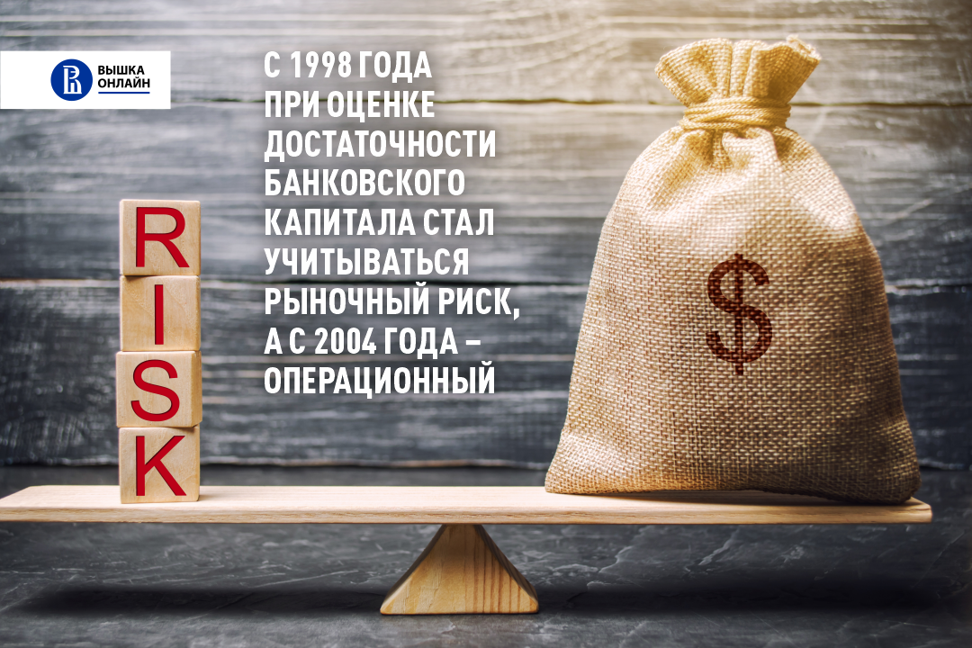 Для оценки достаточности банковского капитала на разных этапах развития банковских систем применялись различные подходы. На первом этапе регулятивный капитал банка оценивался как соотношение номинальной стоимости собственных средств к активам, при этом различия в активах по степени риска не учитывались. Например, для США уровень достаточности капитала составлял 6%. В 1988 году в швейцарском Базеле представители центробанков 12 стран (США, Канады, Японии, Великобритании, Бельгии, Нидерландов, Италии и др.) подписали соглашение «Базель I». С целью ограничения кредитного риска и возможных потерь банкам было предложено взвешивать активы по риску с помощью коэффициентов для пяти категорий балансовых активов и оценивать капитал как соотношение его базовой и дополнительной составляющих к взвешенным по риску активам. Таким образом, собственные средства банков разделялись на более устойчивую и менее стабильную части. Отношение капитала первого уровня к активам, взвешенным по риску, должно быть не ниже 4%, а отношение суммы капитала первого и второго уровня к взвешенным по риску активам — не ниже 8%.